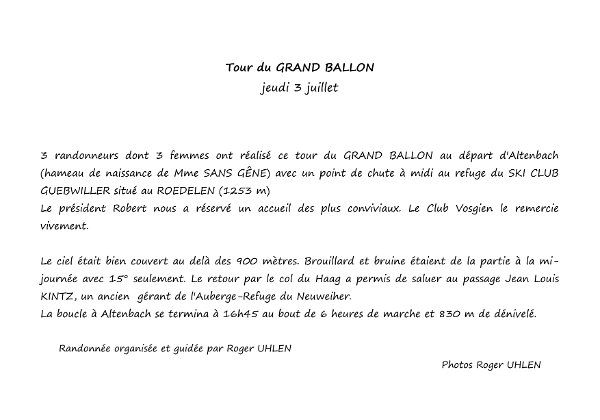 Tour du Grand Ballon, jeudi 3 juillet 2025