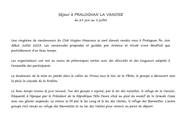 Séjour à PRALOGNAN LA VANOISE du 29 juin au 3 juillet